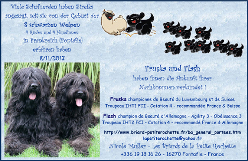 26.11.2013 Anjuna (Flo x Mon Picache) spielt im aktuellen Werbespot von mobile.de mit, der jetzt online ist. Viel Spaß ab 1:32 mit einem Briard, der einen Autofahrer irre macht! mobile.de-Spot Abolut sehenswert!! 18.11.2013 Heute ist eine weitere offizielle HD-Auswertung unseres J-Wurfes eingetroffen. Jouna (Heaven x DJ Dennis) wurde mit HD A ausgewertet. Wir freuen uns riesig! 17.11.2013